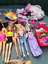 Barbie pz.13+ 2 Ken+ 2 bamboline + Bici + tanti accessori di scarpe e vestiti da sostituire a tutte le Barbie. Tutte sono integri nessun pezzo rotto.....si vende in blocco....non spedisco ritiro in loco. Grazie
