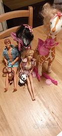 Barbie e Ken Animal Lovin ,Mattel 1988, con panda e scimmia in braccio, giraffa Zenzero e zebra Zizi . Il tutto In buonissime condizioni , vedere solo il vestito della Barbie (che presenta qualche segno visibile in foto ,e il meccanismo del movimento delle braccia che va " un po' a scatti")