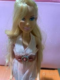 Vendo barbie originale mattel anni 2000 del set Barbie Fashion Fever Coiffure Style Mattel da collezione. La barbie è su un piedistallo che la tiene in piedi, ha un abito rosa con glitter, una cintura rosa tenda, le scarpe grigie ed un anello alla mano. Condizioni pari al nuovo spedisco ovunque