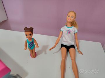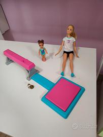 Playset completo Ginnastica con due bambole Barbie trave e tappeto