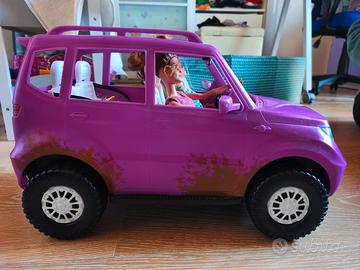 Barbie jeep fuoristrada con due barbie grandi e una piccola