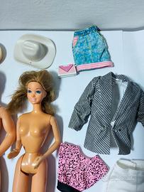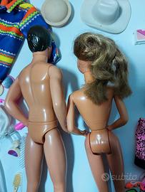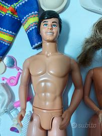 lotto misto composto da Barbie, Ken e vari vestiti e accessori, condizioni buone, segnalo polso rovinato, i capelli non capisco se sono stati tagliati. ulteriori foto disponibili