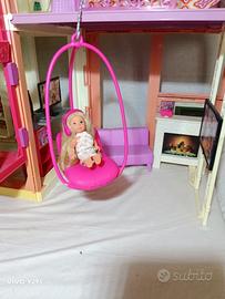 Con tre eleganti piani di spazio per giocare, questa casa di Barbie® sarà la scenografia perfetta per tutte le storie che inventerai! Quattro stanze e un'area relax sul tetto, con tanti dettagli realistici, rendono questa nuova casa di Barbie® davvero raffinatissima. Mobili da sogno e accessori moderni ispirano la creatività e l'immaginazione. Chiudi la casa riponendo gli accessori all'interno in modo facile e pratico; riaprila per ricominciare a giocare in un batter d'occhio! . Al piano terra c'è la cucina e il salotto; al primo piano c'è un bagno e la camera da letto; passa da un piano all'altro sull'ascensore che attivi tu! Quando Barbie® sale al primo piano, il tetto si apre a sorpresa, completo di un ombrellone a comparsa! Al piano terra, una moderna poltroncina altalena del salotto si apre, così Barbie potrà dondolare dentro e fuori dalla casa. I mobili includono pezzi classici dal design contemporaneo con l'elegante vasca da bagno trasparente, il tavolo da pranzo moderno con due sedie, il divano con piedini e il comodo letto, tutti con dettagli realistici. Vivi tutte le storie più fantasiose per Barbie® e i suoi amici (bambole incluse). Gli accessori addizionali aggiungono infinite possibilità al gioco, come le stoviglie per la cucina e il tablet per Barbie per divertirsi in salotto. La perfetta casa per lo stile di vita di Barbie®, perché con Barbie puoi essere tutto ciò che desideri! Viene venduta con tutti gli accessori in foto.