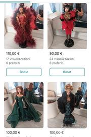 Barbie da collezione chiedere per info, foto aggiuntive e prezzi. chi ne prendesse più di una può ricevere uno sconto. tutte senZa scatola, solo la bambola, il piedistallo e la certificazione di autenticità.