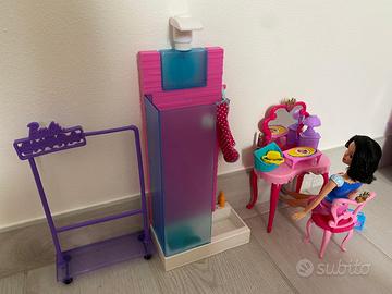Specchiera di Barbie e asta che sostiene i vestiti con doccia bambola inclusa 28
