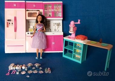 Set di mobili per Barbie, cucina banco colazione accessori e bambola Skipper