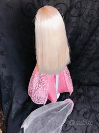 Splendida Barbie Princess Bride 2000 vintage, corpo 1966 Mattel Inc. Indonesia, con lunghi capelli platino lisci, setosi e brillanti, senza nodi. La bambola include collana e orecchini originali con perline, più abito da sposa alternativo elegante con velo coordinato e scarpe Barbie bianche. Condizioni eccellenti, ideale per collezionisti di Barbie anni 2000, bambole da collezione, Barbie sposa e Barbie rare. Perfetta come pezzo espositivo o aggiunta preziosa per co