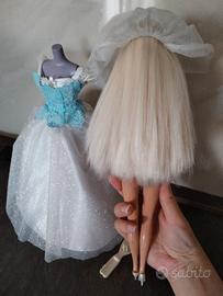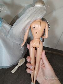 Splendida Barbie Princess Bride (Principessa Sposa) della Mattel, anno 2000. Un vero pezzo iconico per i collezionisti e gli amanti delle Barbie vintage degli anni 2000. ✨ Caratteristiche principali: Meccanismo funzionante: Sollevando il braccio con lo specchio, la bambola emette la sua classica musichetta magica. Abito originale: Indossa il suo iconico vestito da sposa con corpetto azzurro e gonna bianca glitterata (in buone condizioni). Accessori inclusi: Tiara originale, velo, collana di perle, specchio e piedistallo a forma di manichino lilla (come da foto). ⚠️ Segni del tempo: La bambola è sprovvista della scatola originale. Presenta un piccolo difetto estetico sul rossetto (manca un puntino di colore), come mostrato nei dettagli delle foto. Non è presente il bouquet originale. Perfetta per chi vuole rivivere la magia di questa Barbie o per chi cerca i pezzi originali per completare la propria collezione.