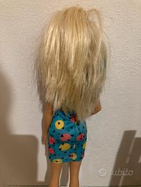 bambola Barbie con un grazioso vestito estivo. - Vestito corto con fantasie colorate. - Capelli biondi lunghi.