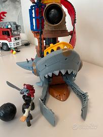 Galeone dei pirati Fisher Price. Usato molto poco. Spara dal cannone, apre le ali per volare, getta l’ancora, mangia tutto con la bocca da squalo.