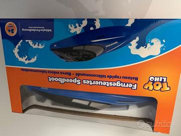 barca telecomandata bellissima colore mai aperta mai usata. velocità fino a 10km/h movimento 4 direzioni telecomando e batterie incluso