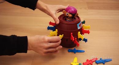Consiste nel cercare di non far saltare il pirata dal barile inserendo le spade uno alla volta nel barile, il primo che attiva lo scatto… PERDE!!!