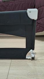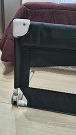 barriera pieghevole per letti Hoplà protegge il bambino per non farlo cadere dal letto. Si fissa facilmente sotto al materasso ed è adattabile ai più comuni tipi di letto. Ideale anche in viaggio: si piega per essere riposta in una pratica borsa in dotazione, occupando poco spazio. Hoplà è anche reclinabile: così è più facile rifare il letto o adagiare il bambino per il riposo.