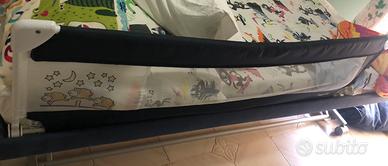 Barriera letto da 150 cm con rete traspirante, ideale per prevenire cadute durante il sonno. Facile da installare, adatta a bambini da 18 mesi a 6 anni.