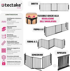 tectake®, Barriera Protettiva per Camino per Bambini, 290 cm, Sistema di Chiusura a Livelli, Costruzione Robusta in Acciaio, Modulare e Flessibile, Cancelletto per Scale e Corridoi