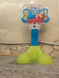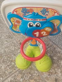 È un mini canestro da basket interattivo con luci, suoni e musiche che si attivano quando la palla passa attraverso il canestro.