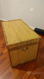 Baule in legno vimini bambù Vintage Ottimo come contenitore giochi dei bimbi o coperte Dimensioni lunghezza 92 cm larghezza 50 cm altezza 50 cm Mobile di qualità, niente a che vedere con Ikea, Maisons Du Monde, Mondo Convenienza