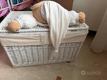 Contenitore - Baule con peluche che spunta con piedi e testina , per riporre giocattoli .