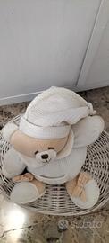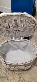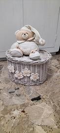 Bauletto in vimini vintage della Nanan grande con orsetto Tato in ciniglia e foderato in piqué. Utile vicino al fasciatoio per il cambio pannolino