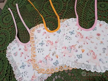 set bavaglini bimba nuovi e sartoriali con pizzo di sangallo il set comprende tre bavaglini al costo di 7 euro al pezzo ma se ne possono aggiungere a piacimento verranno consegnati con la confezione