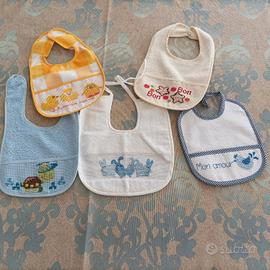 Bavaglini neonati ricamati a punto croce. €9 l'uno.