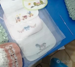 Bellissimi bavaglini per neonato/a ricamati interamente a mano disponibili in due formati: Bavaglini ad uncinetto € 17 Bavaglini punto a croce € 16