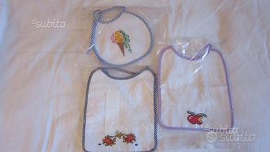 Bavaglini nuovi ricamati a mano a punto croce. Vari soggetti tutti differenti STATO: OTTIMO/NUOVO ? 7,00 cad.