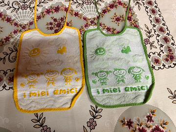bavaglino per neonato/bambino in morbida spugna, Chiusura a laccetto o elastico sul retro del collo. In buone condizioni. Misure: 27x21 cm.