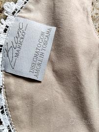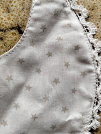 Bavaglino Blanc Mariclo unisex, grigio e bianco con stelline e pizzetto. Nuovo con cartellino