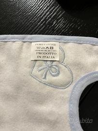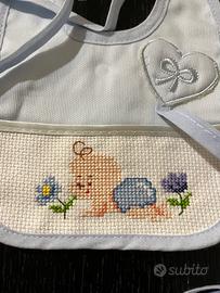 Bavaglino di puro cotone, realizzato a mano con la tecnica del punto croce.