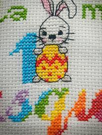 Dolcissimo bavaglino ricamato a mano per accompagnare la prima Pasqua del tuo bebè.
