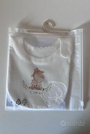 Basico bavaglino morbido da bambino . Il capo si sviluppa su base beige con piccola stampa giraffa in tinta. Il capo è in cotone oeko - tex, testato per sostanze nocive garantisce alta sicurezza.