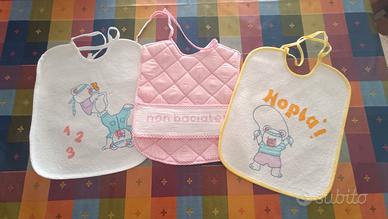 Varie bavette da neonato e da asilo, varie tipologie. Lotto variegato divisibile. Tutto nuovo senza cartellino. Ci sono bavaglini impermeabili e non.