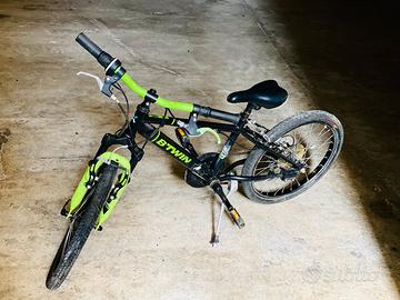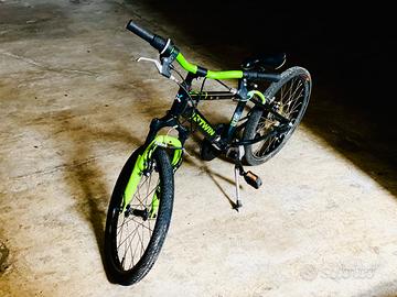Marca: B'Twin • Modello: Mountain bike (simile al Racingboy 500) • Ruote: 20 pollici • Marce: 6 velocita • Età indicativa: Bambini dai 6 ai 9 anni • Altezza consigliata: Da 120 a 135 cm • Caratteristiche: Telaio nero con dettagli verdi, forcella ammortizzata