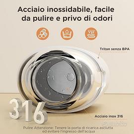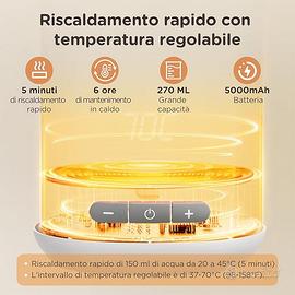 Bear Termos da Viaggio Senza Fili Portatile,Capacità di Riscaldamento Rapido 270ml-6 ore di Mantenimento-Temperatura Regolabile da 37 a 70°C,Ideale per i Viaggi ======== ===================================== 【Il latte Può Essere Preparato Ovunque】: Nota: questo prodotto impiega 6 ore per ricaricarsi completamente.Termos da Viaggio Senza Fili consente di riscaldare facilmente l'acqua quando si è in viaggio. Si può infilare in una borsa da viaggio o agganciare al passeggino, in modo che il bambino abbia il latte caldo ovunque. È alimentato da una batteria ricaricabile e può essere ricaricato facilmente tramite una presa di corrente, un dispositivo in auto o anche tramite un cavo USB sul computer. 【Riscaldatore Rapido in 5 Minuti】: Riscalda 150 ml di acqua da 20 a 45 gradi centigradi in soli 5 minuti. Con un intervallo di temperatura regolabile da 37 a 70 gradi centigradi e una tecnologia avanzata per un riscaldamento uniforme, lo scalda biberon neonato portatile da viaggio assicura un controllo preciso della temperatura, previene il surriscaldamento e preserva i nutrienti essenziali. 【Design Sicuro e a Prova di Perdite】: realizzato in Tritan senza BPA e dotato di una piastra riscaldante in acciaio inox 316, questo Termos da Viaggio Senza Fili è sicuro, inodore e non comporta rischi per la salute. Il design a prova di perdite previene efficacemente le perdite, rendendolo una scelta affidabile per i genitori che viaggiano molto. 【Controllo e Visualizzazione Precisi Della Temperatura】: la temperatura dell'acqua o del latte può essere impostata al grado più vicino e la temperatura corrente viene visualizzata su uno schermo a LED di facile lettura. La protezione contro le scottature garantisce la sicurezza. Quando si è in viaggio, lo scalda Termos da Viaggio Senza Fili mantiene l'acqua calda fino a 6 ore. 【Portatile e Senza Fili】: Questo Termos da Viaggio Senza Fili è leggero ed elegante, si infila facilmente in una borsetta o in una borsa per pannolini, ideale per i viagg