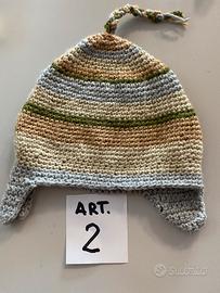 ART. 2 - berretto fi lana ad uncinetto per bambino/a a righe multicolore con proteggi orecchie.circonferenza 42cm. .. 14€.