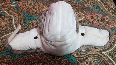 Cappello da aviatore in pelliccia di coniglio / berretto pelliccia di lapin, colore bianco/ grigio. Usato, in buoni condizioni, presenta un piccolo difetto, invisibile, quando indossato.