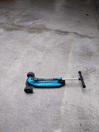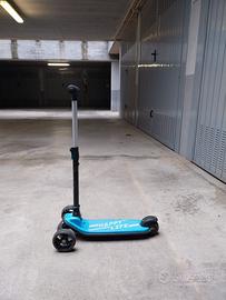 Bersey turbo + Monopattino pieghevole a 3 ruote, ha 2 grandi ruote anteriori a LED e 1 piccola ruota posteriore a LED, altezza regolabile su 4 livelli. Il parafango posteriore rinforzato flessibile e controllabile, che funge anche da freno, copre l'intero pneumatico posteriore per un arresto affidabile. Pieghevole e portatile in un clic