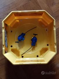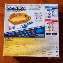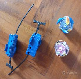 Comprende: 1 arena di gioco, 2 Beyblade, 2 Beyblade launcher.