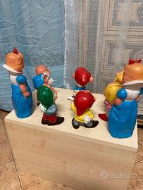 Vendo collezione completa pupazzi della LEDRA PLASTIC biancaneve ( versione bionda) e i sette nani in più aggiungo altra biancaneve come da foto.