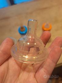 Tutti i biberon hanno il ciuccio in gomma un po' rovinato, essendo usati.