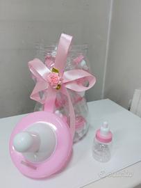 biberon grande rosa con mini biberon , per lieto evento oppure battesimo. Nuovo.