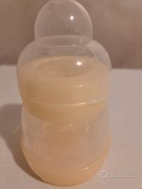 Biberon piccolo 130 ml Mam. Tappo con misurino da 50 ml. Pezzi componibili e compatibili con altri biberon e bicchieri Mam. Colore bianco traslucido e trasparente. Vendo senza tettarella.