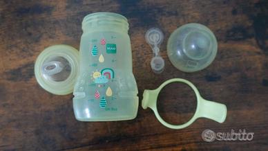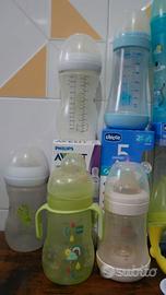 regalo una decina di biberon. sono sempre stati messi nello sterilizzatore, per questo sono opachi. ho anche giochi e tutine da neonato da regalare ...