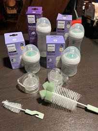 Set di biberon della Philips Avent con sistema AirFree anticolica. Ottimi dalla nascita ai 3 mesi Nella scatola sono presenti: - 2 biberon da 125ml con AirFree da 0+ mesi - 1 biberon da 260ml con AirFree da 1+ mesi - 1 biberon da 330ml da 3+ mesi - 4 tettarelle extra con flussi diversi in base alle esigente del piccolo - 2 scovolini per la pulizia del biberon e delle varie tettarelle Ottimo sistema anticolica.
