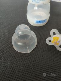Biberon più ciuccetto MAM nuovi mai utilizzati, biberon anticolica 130 ml, tappo da utilizzare anche come misurino, evita le bolle d'aria e previene le colichette