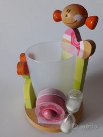supporto in legno con figure colorate per sostenere il bicchiere,