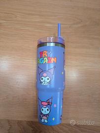 bicchiere termico (o tazza da viaggio) di Kuromi, un personaggio Sanrio.
