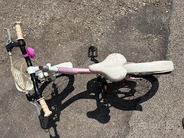 Vendo bici 14 pollici per bambina con gomma anteriore forata. La bici è usata ma in buone condizioni