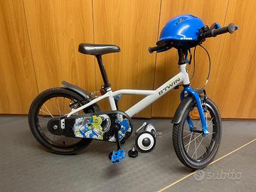 Bici 16" marca b-twin per bimbi 4-6 anni con incluse le rotelle e il casco.